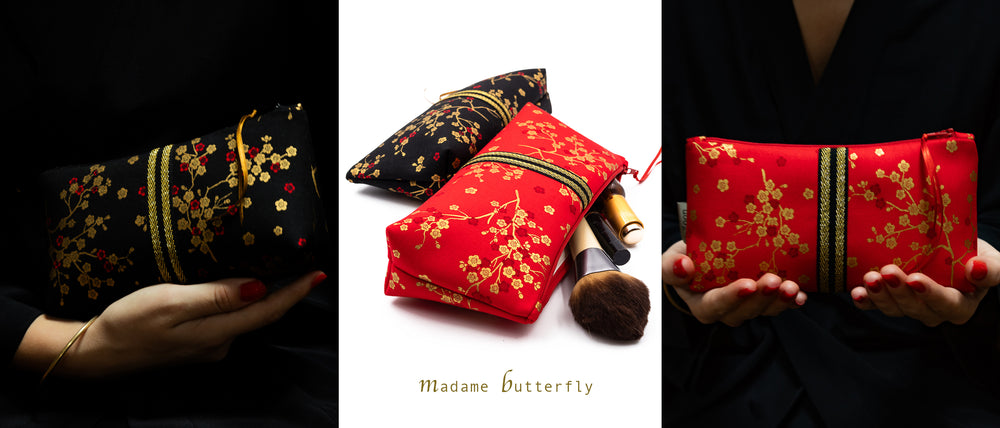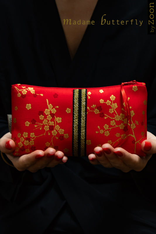 pochettes - 3 tailles - "kimono rouge" - tissu japonais